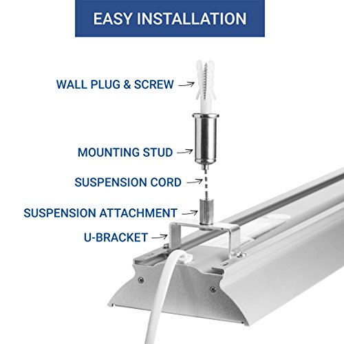 - ✔ MULTIPLE MOUNTING OPTIONS - Install this 4 foot shop light as flush mount or a hanging light fixture with adjustable height. The innovative cable hardware included with each light allows for versatile installation applications. Assembly is a breeze!