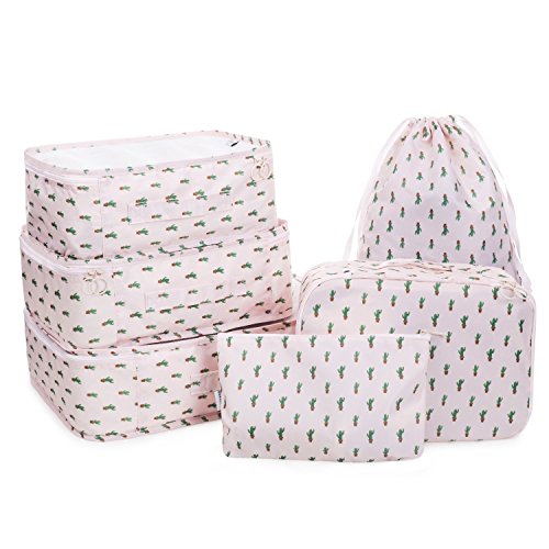 Packing Cubes Luggage Organizers Travel Bags Bra Storage Clothing Laundry Bag and Electronics Accessories Pouch 6 set … (Cactus-6pcs)
