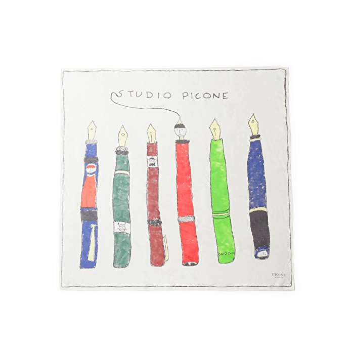 원본상품명: (ピッコネアッチェッソリ)PICONE ACCESSORI シルクスカフ大判 ハンドプリント 90×90 ペン 生成り 日本製