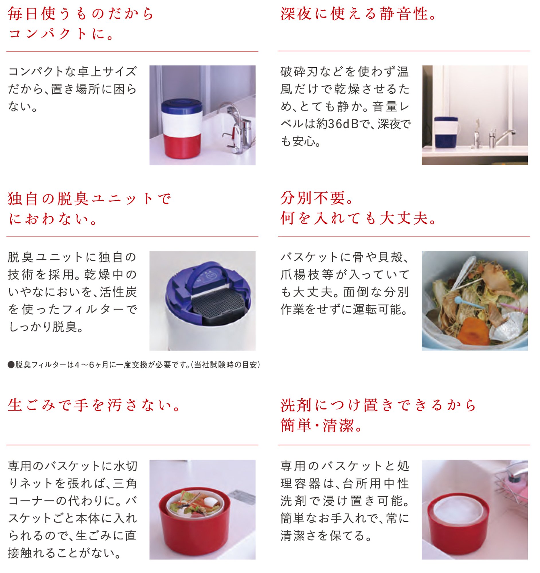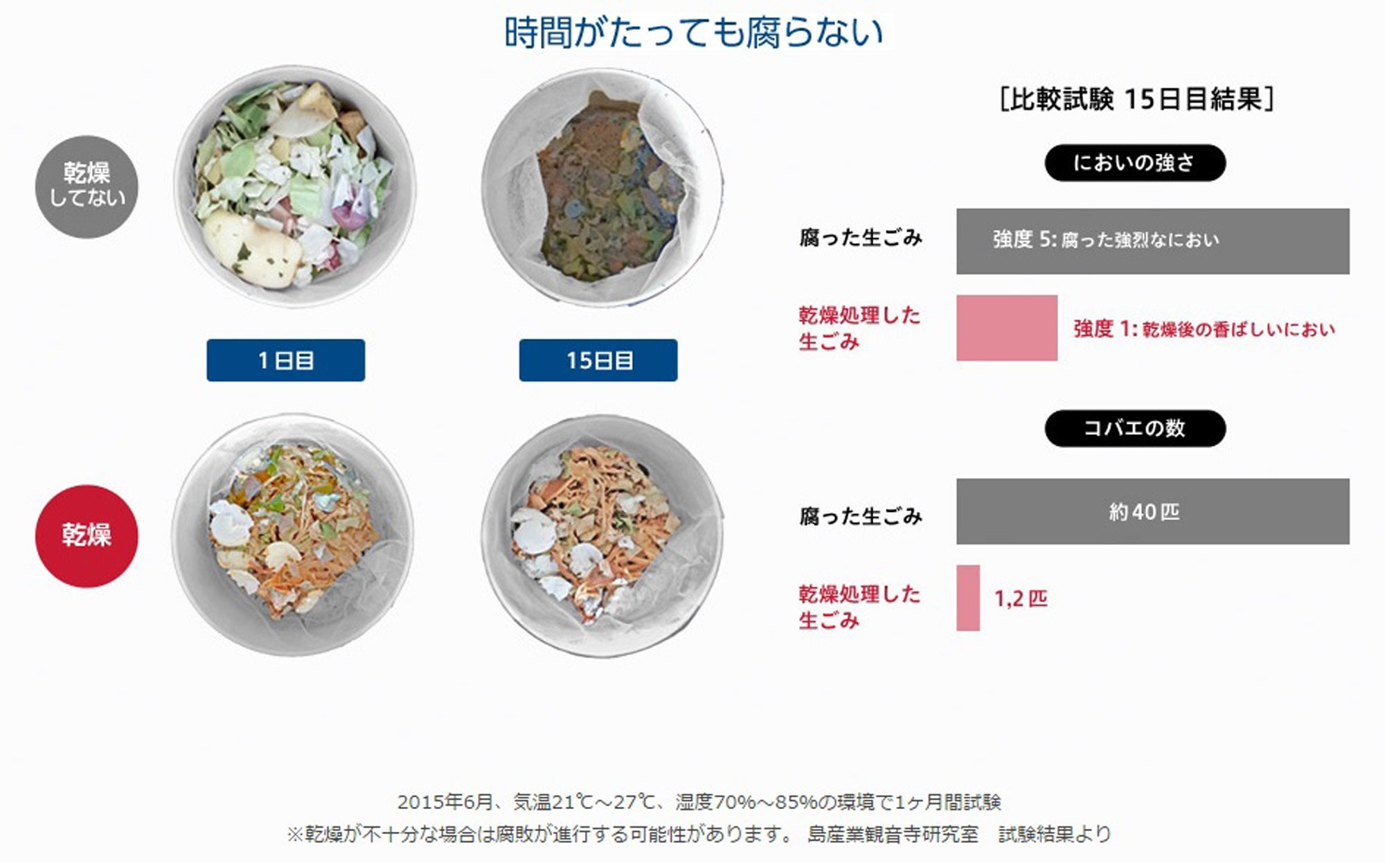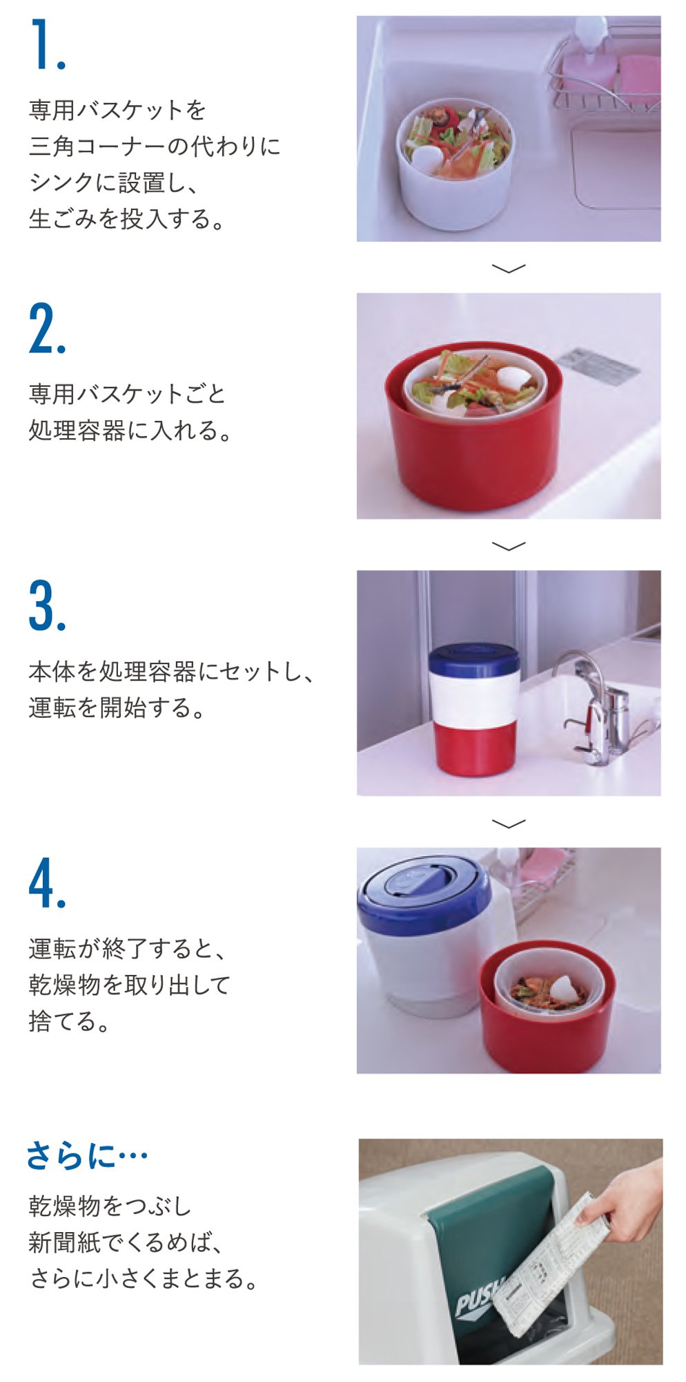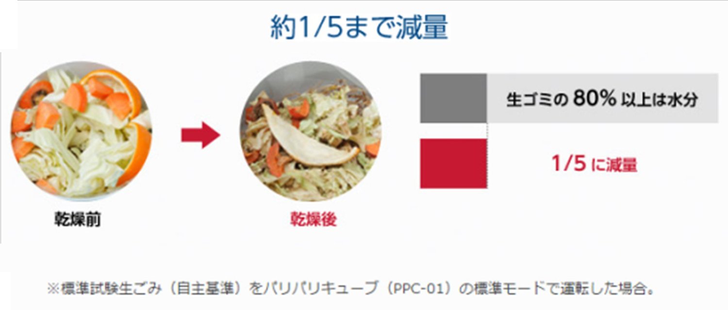 ● The amount of dried garbage is reduced to 1/5 so it is easy to remove garbage