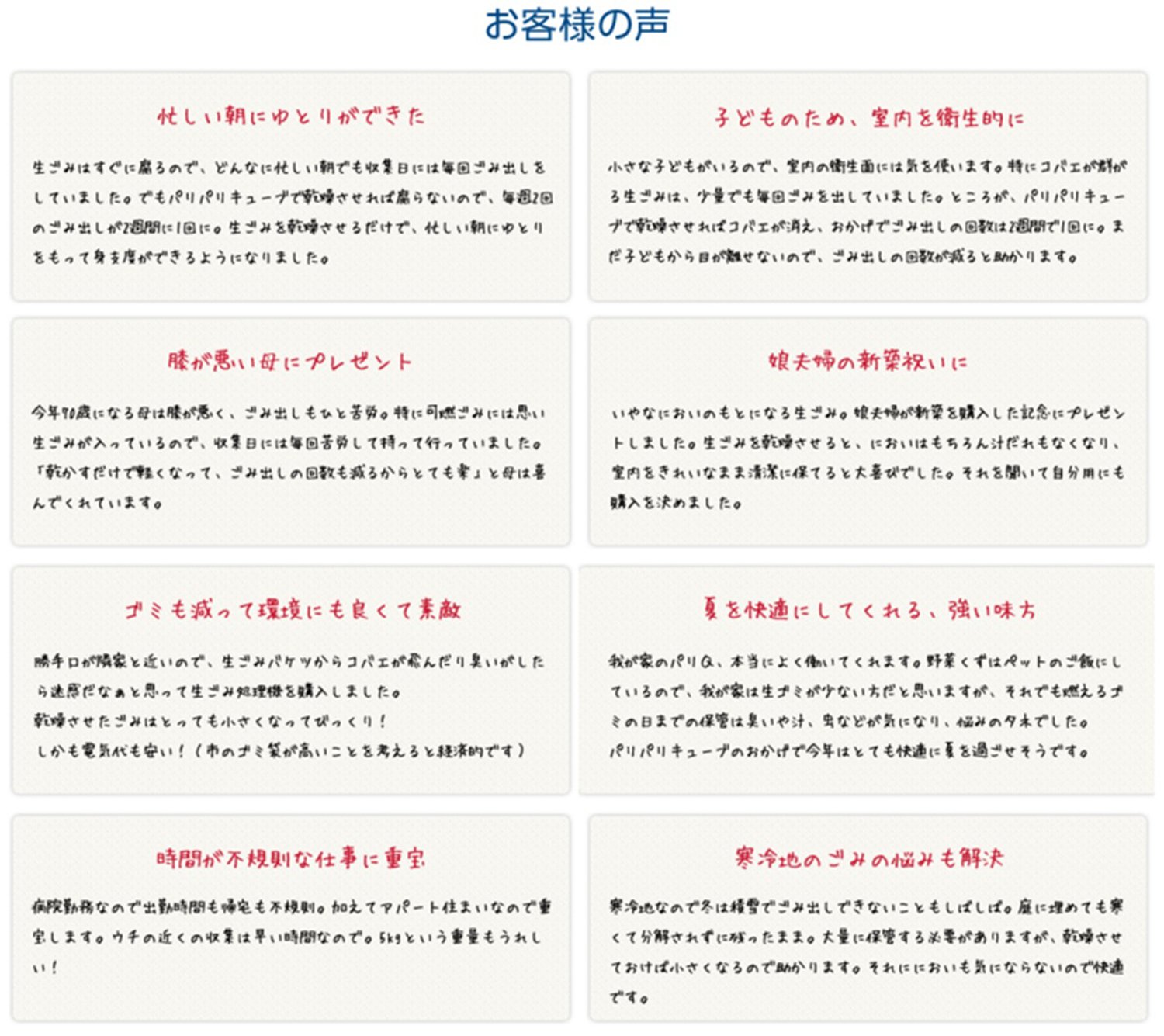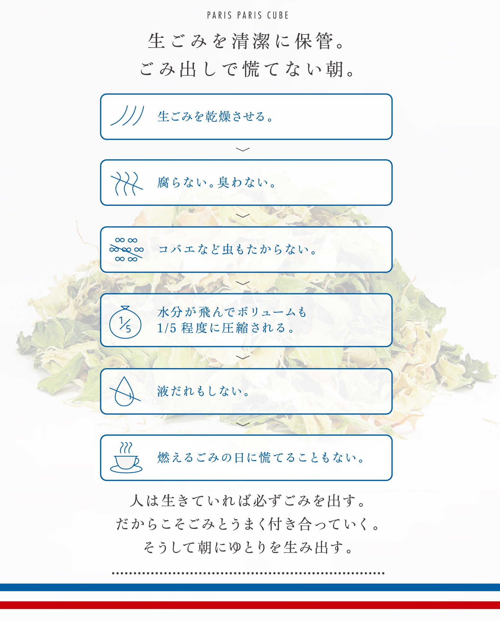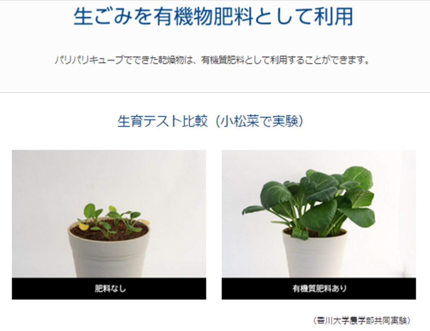 ● The amount of dried garbage is reduced to 1/5 so it is easy to remove garbage