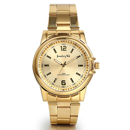 JewelryWe 맨즈 손목시계호 형문자판 쿠우(Qoo)오츠시계 손목시계 비지니스 상품 고급감 중요한 사람에 선물 골드