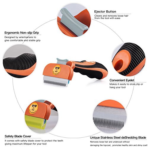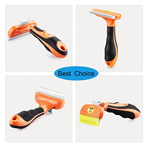 DULU professional pet grooming brush deshedding tool reduce shedding for small medium large dogs and cats with long or short hair with 2.7 inch wide stainless steel safety blade Comb the hair frequently can reduce the floating hair, dead hair, to prevent the hair ball, effectively protect the pet's intestinal health.
