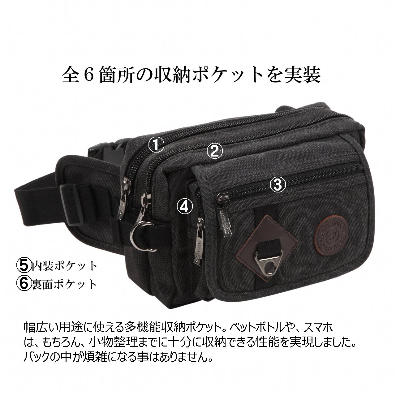 You can use it not only as a waist bag around the waist but also as a shoulder bag with diagonal cliff.