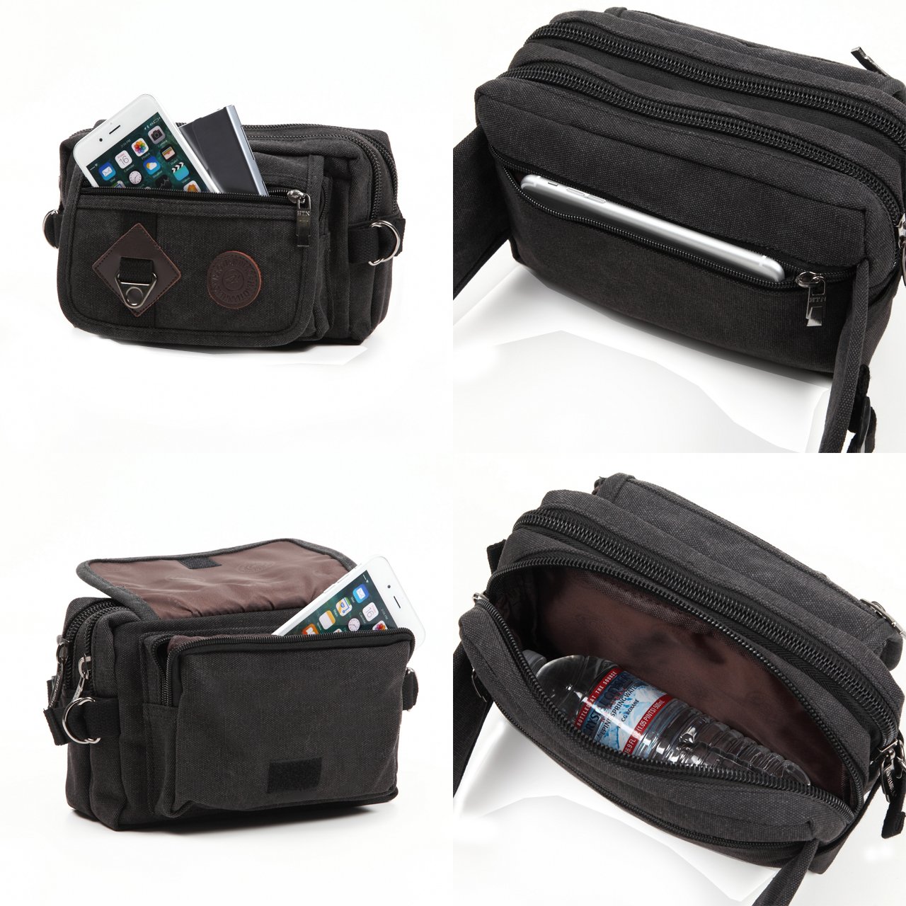 All four colors are black, brown, khaki, beige.