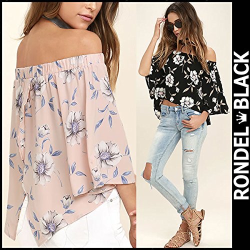 -. Title : RONDEL-BLACK(ロンデルブラック)オフショルダー バックスリット 花柄 カットソー バルスリーブ トップス レディース ブラック ピンク[ネコポス可] black