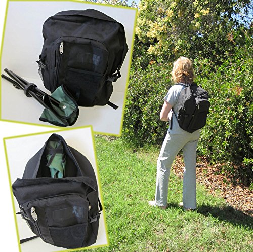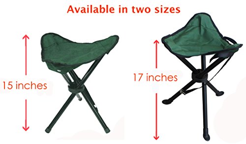- Feature : Collapsible stool, folds to 3" diameter. Weights less than 1.5 lbs / Supports weight up to 200 lbs / Steel tube legs and durable polyester fabric / Adjustable shoulder strap / Color: Green - Seat height: 17 inches from the ground (when open)