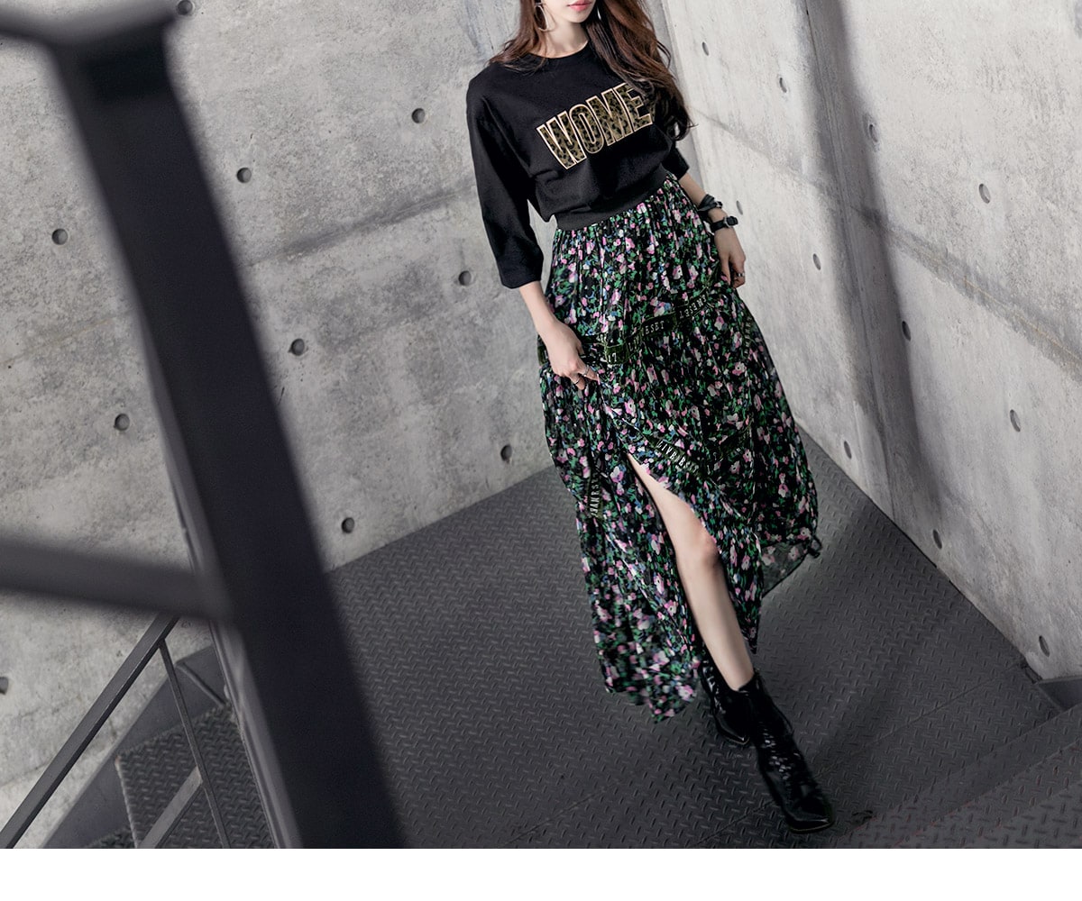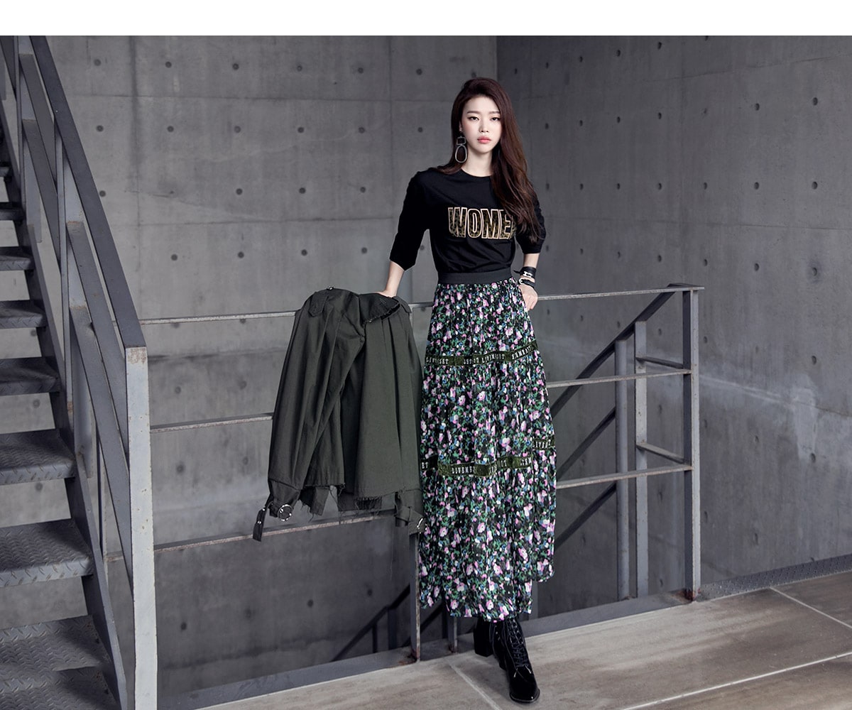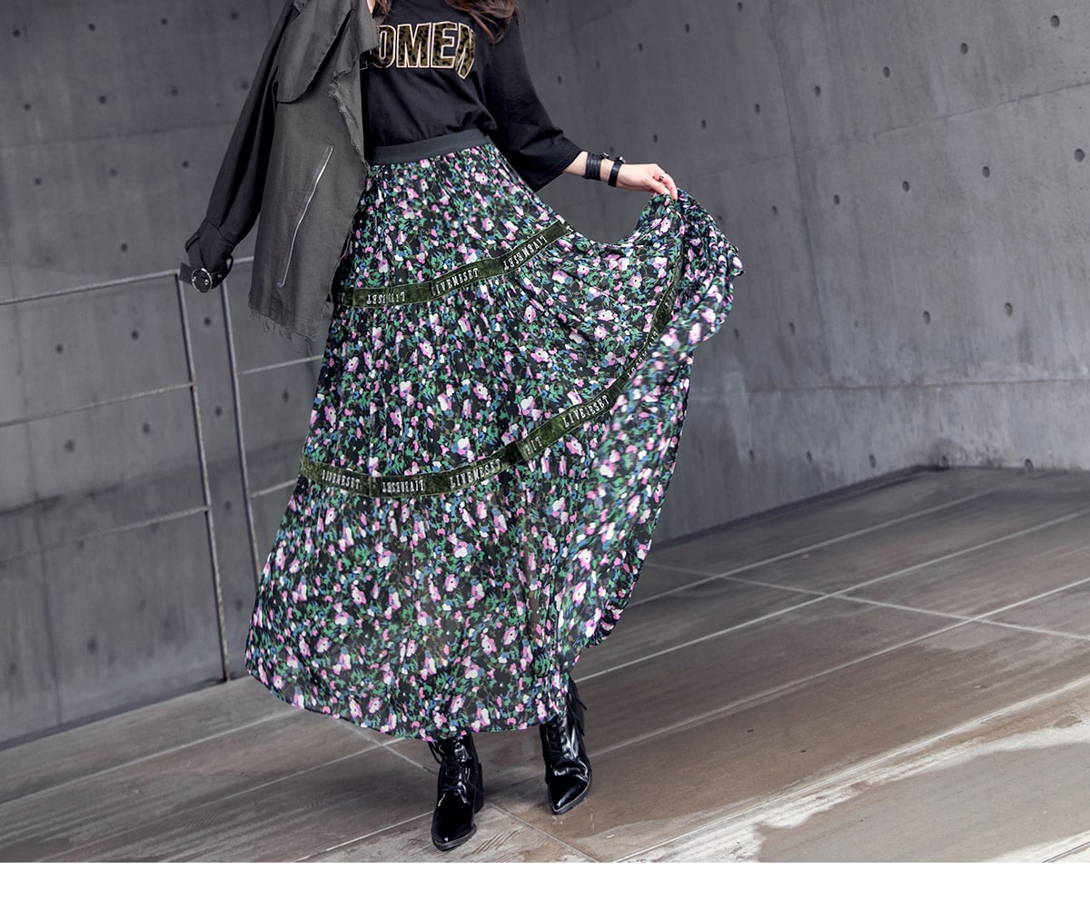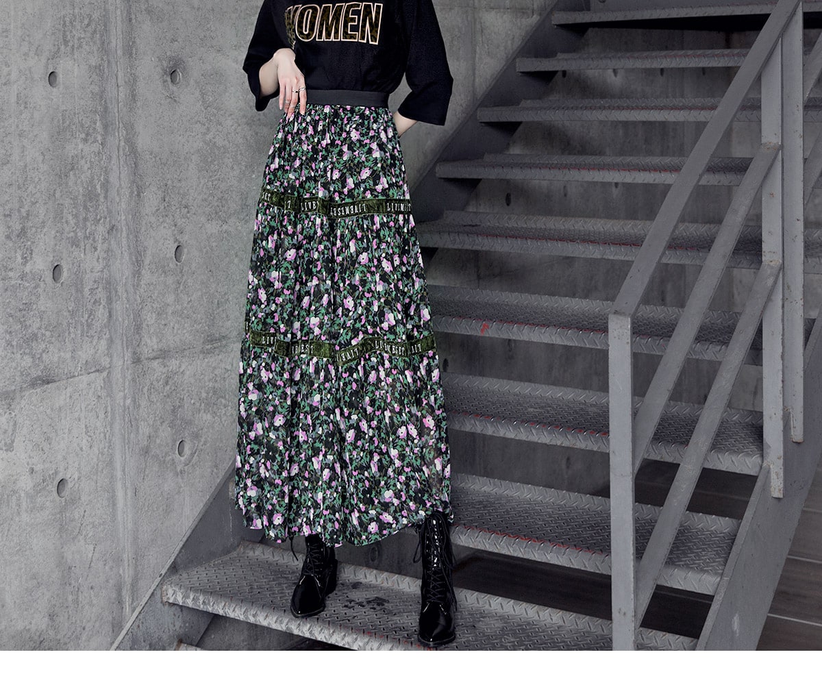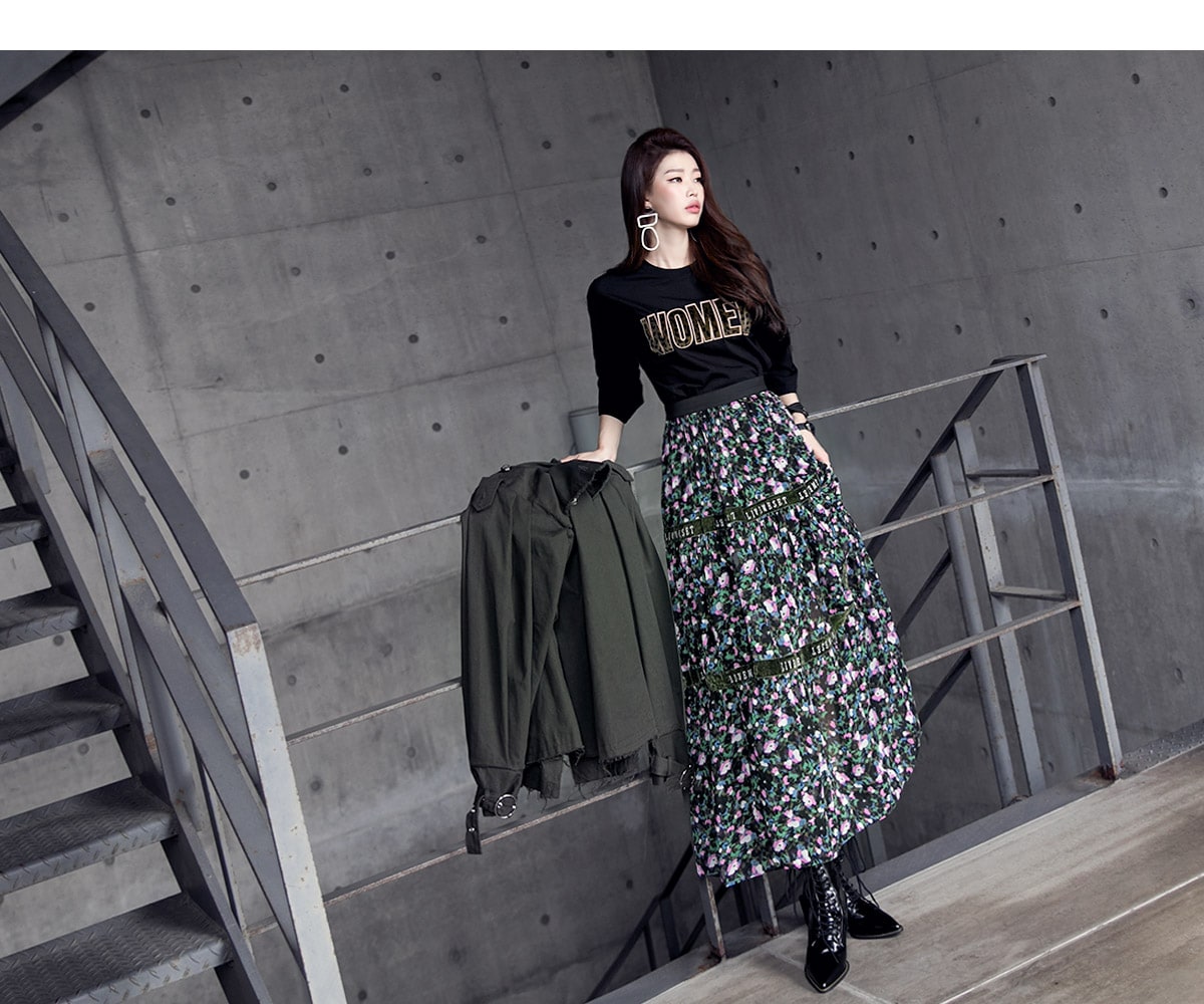SK1773 플라워링 맥시 레이스 스커트 Black mix