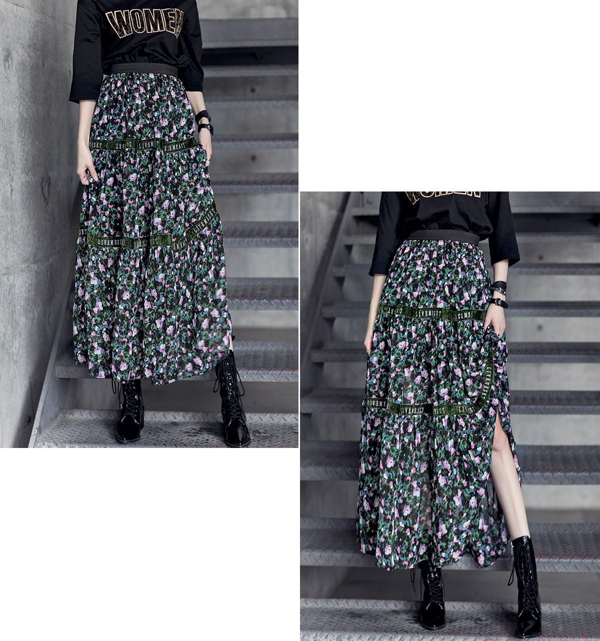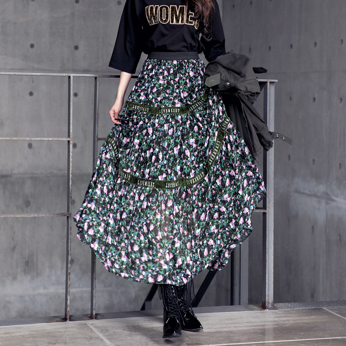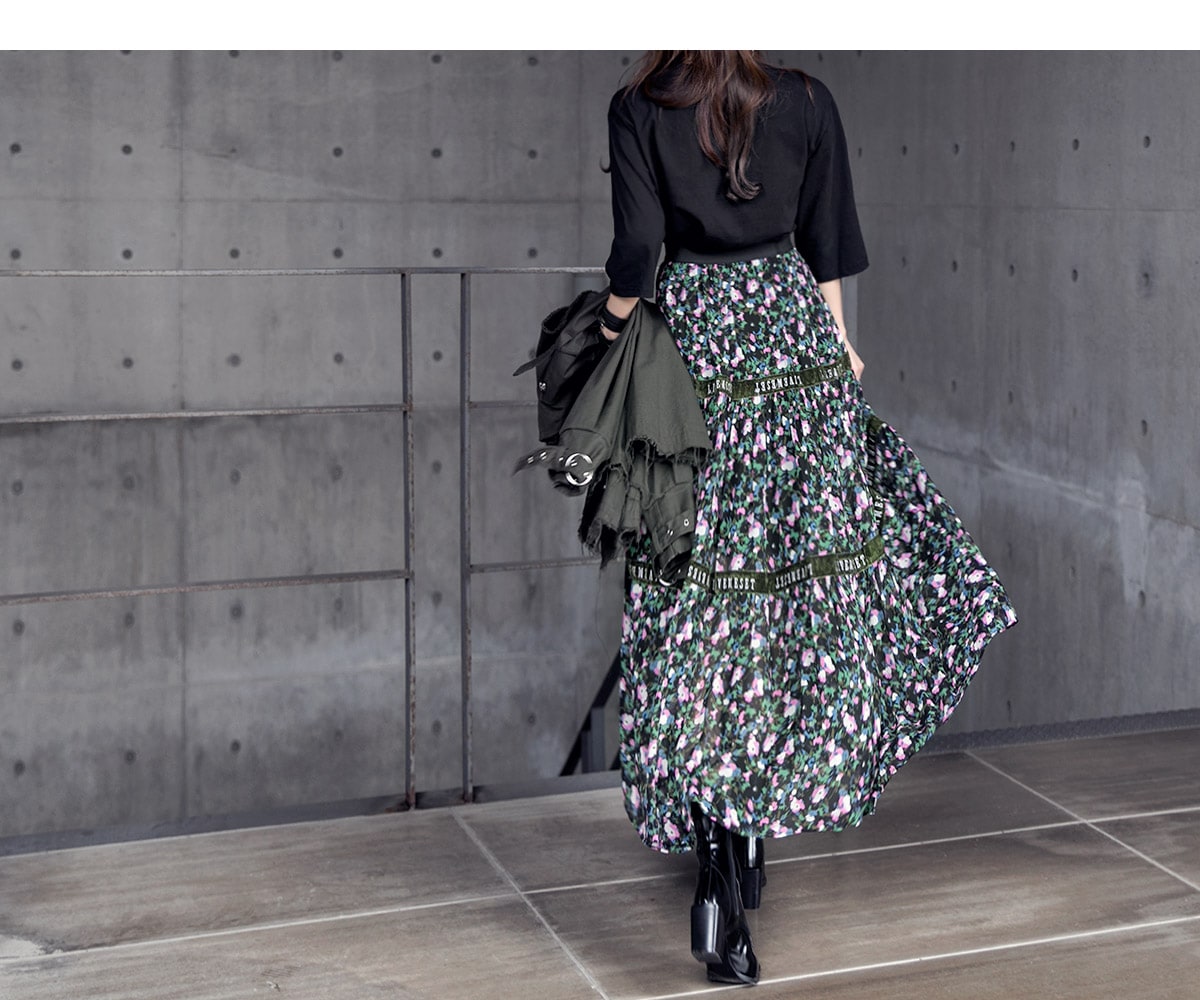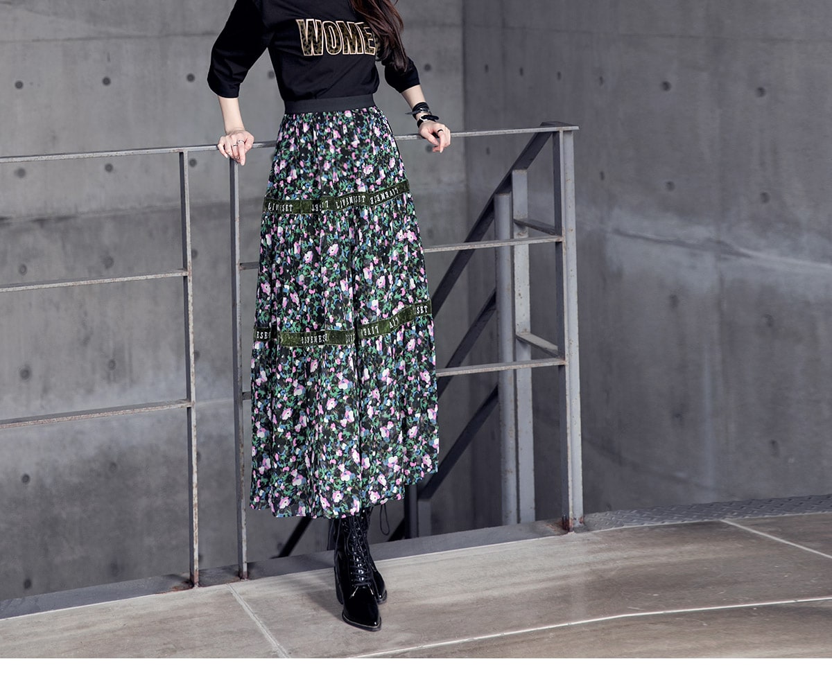 SK1773 플라워링 맥시 레이스 스커트 Black mix