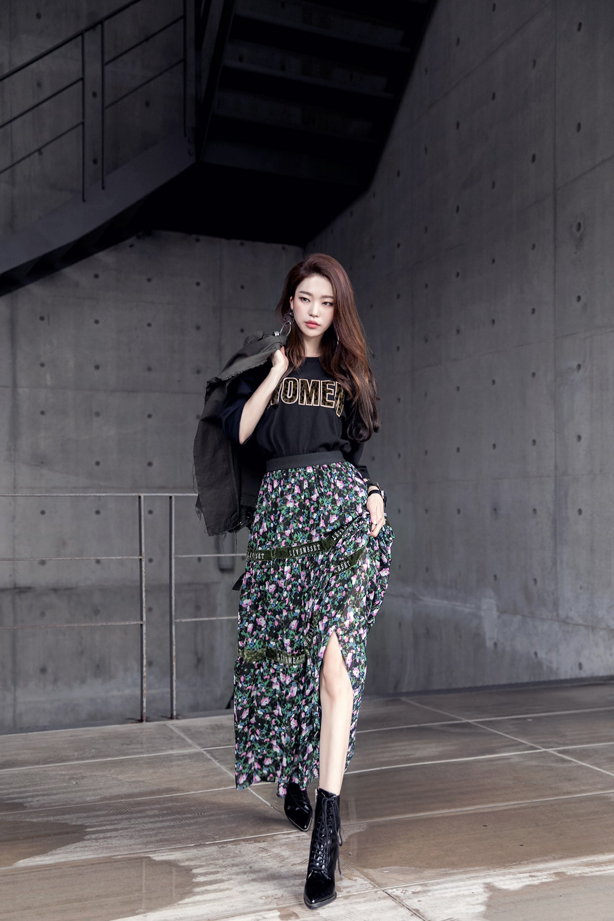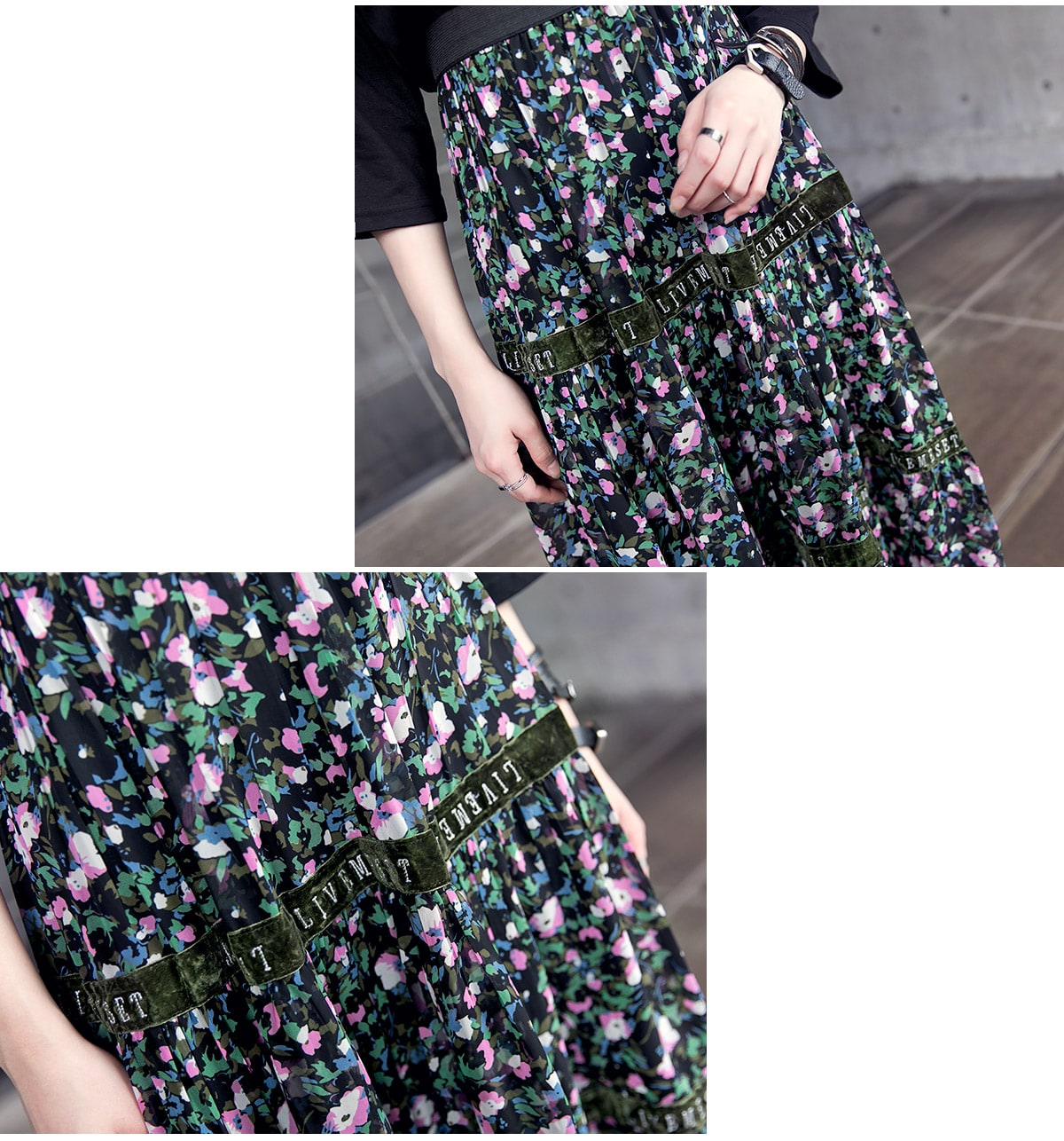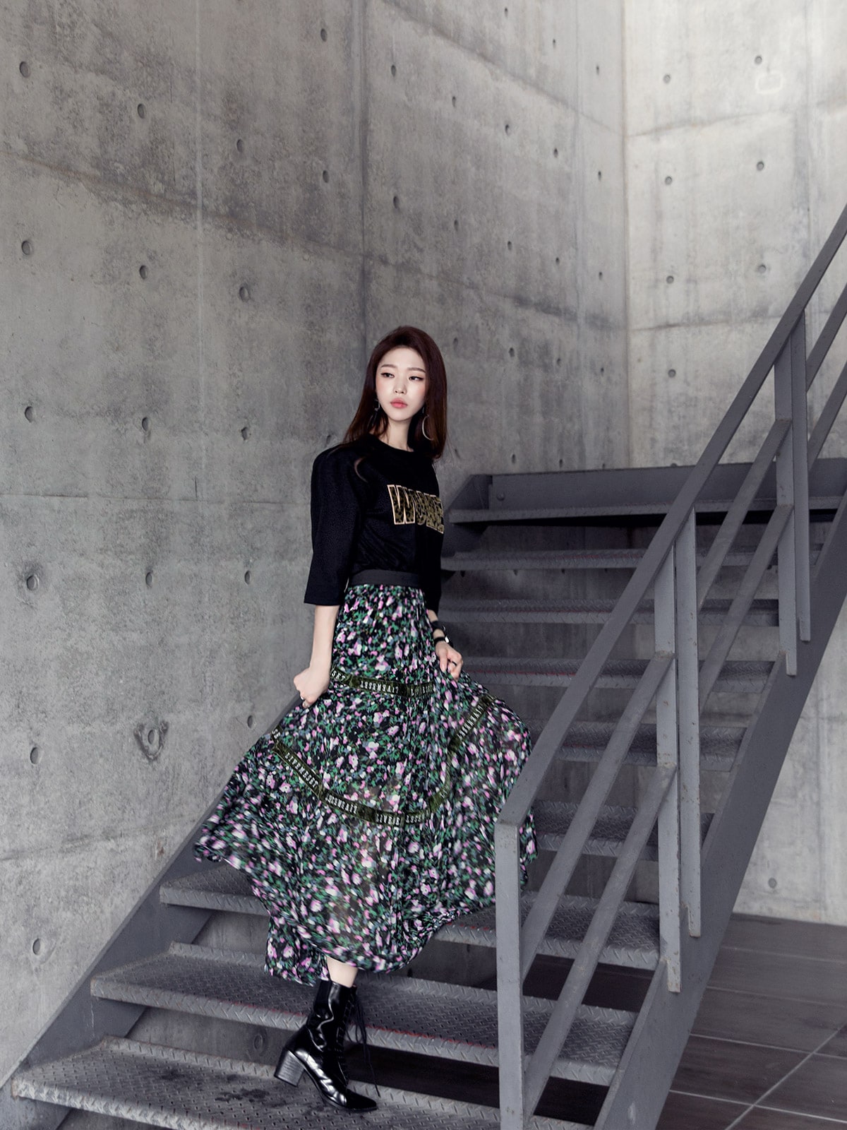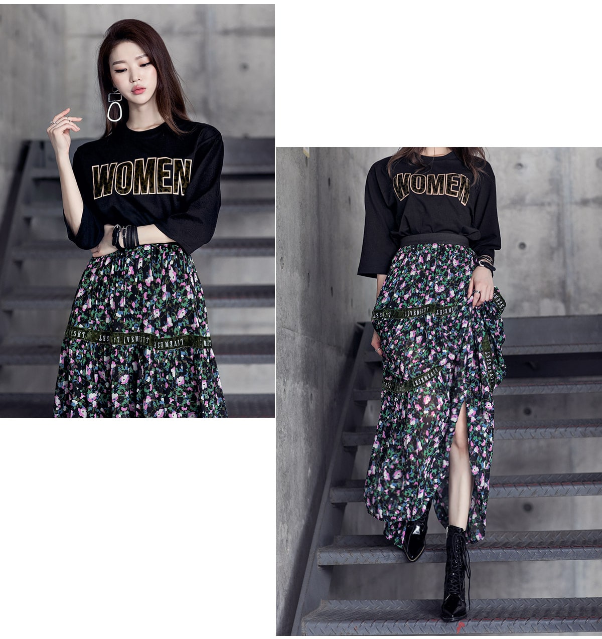 SK1773 플라워링 맥시 레이스 스커트 Black mix