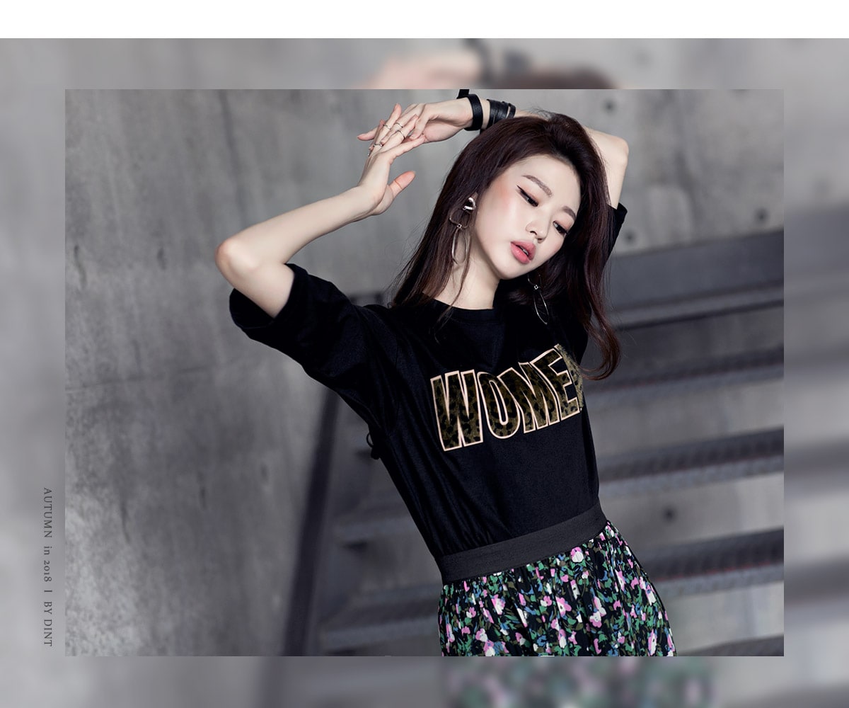 E1798 레오파드 레터링 탑 Black