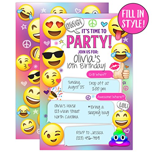 Emoji Party Invitations, Girl Emoji Birthday Invitations, Emoji Invites, Emojional20 Fill In Style with Envelopes