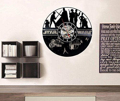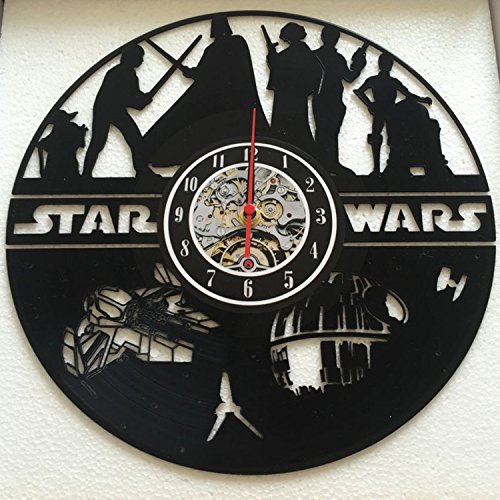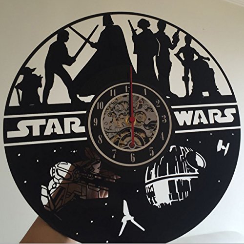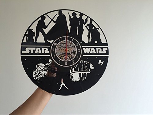 Studio : Vinyl Evolution Publisher : Vinyl Evolution Binding : Kitchen Product Description Brand new, never used clock made of old used vinyl record. Be prepared to reveal the new sides of old school stuff. Feel free to ask about any custom changes you need. Detailed information about the product: - It has the silent mechanism - finally you may get rid of the "tick-tock" sounds in your house. Another advantage of the item is its design. Be sure you won't find the same one in your friend's home. ; - the clock face is a sticker and you may change it for no additional charge; - the size of the clock is 12; - each clock comes in a separate protected box with clock hands unattached; The clock is made of a single vinyl record, so you are not only getting a piece of art, but a piece of long history, which will carry it's spirit alongside you for a long time! Click "BUY NOW' or "ADD TO CART" and enjoy your "own Star wars"! 0