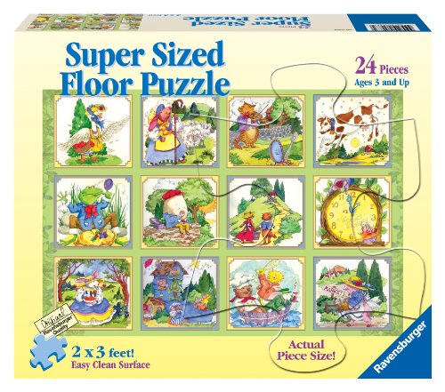 -. Binding : Toy -. Brand : Ravensburger -. EAN : 0666273052872 -. Feature : Puzzle size: 24" x 36" / Puzzles help support a child's development as they play / While piecing together various shapes and sizes to discover a bigger picture, a child develops concentration and creativity -. Genre : Other -. IsAdultProduct : 0 -. ItemPartNumber : 052872 -. Label : Ravensburger -. LegalDisclaimer : Must be at least 18 & over to purchase -. Manufacturer : Ravensburger -. Model : 5287 -. MPN : 052872 -. NumberOfItems : 1 -. PackageQuantity : 1 -. PartNumber : 052872 -. ProductGroup : Toy -. ProductTypeName : TOYS_AND_GAMES -. Publisher : Ravensburger -. ReleaseDate : 2011-01-31 -. Studio : Ravensburger -. Title : Ravensburger Nursery Rhymes - 24 Pieces Super Sized Floor Puzzle -. UPC : 666273052872