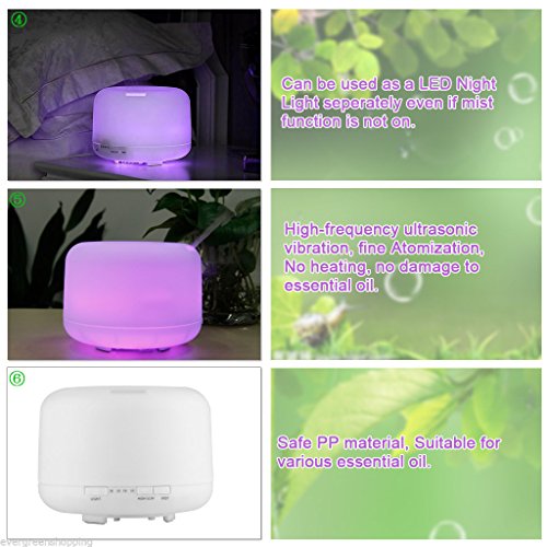 Alotpower 7 Color Gradient Light Aroma Diffuser Ultrasonic Aromatherapy Machine Air Humidifier Mistener Atomizer 500ML Extra Large Capacity
