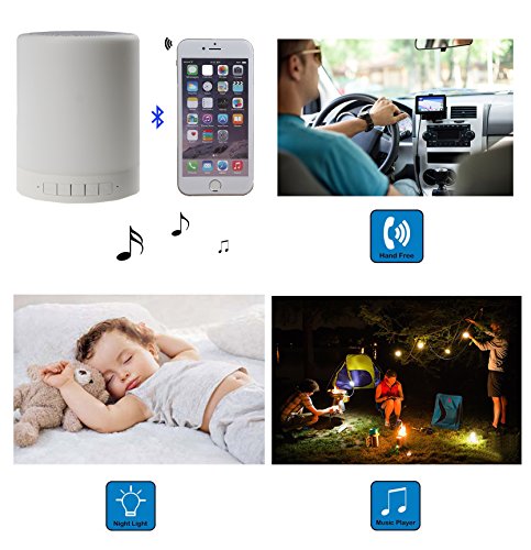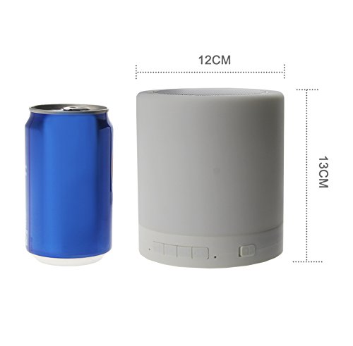 Touch Lamp function: Long press the switch of the speaker on the bottom. Turn on the light by tap the mesh on the top, and the lamp will light on in the dimmest grade one. The brightness can be adjusted by tap the top mesh, and there are 3 brightness grade: dim, intermediate, bright. Tapping the top mesh when in high bright, the light will be off. It can be hand up or carried by hand.