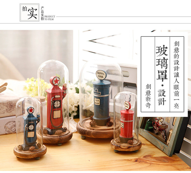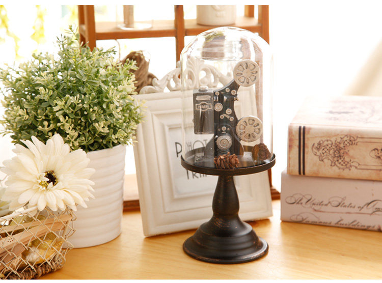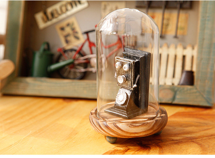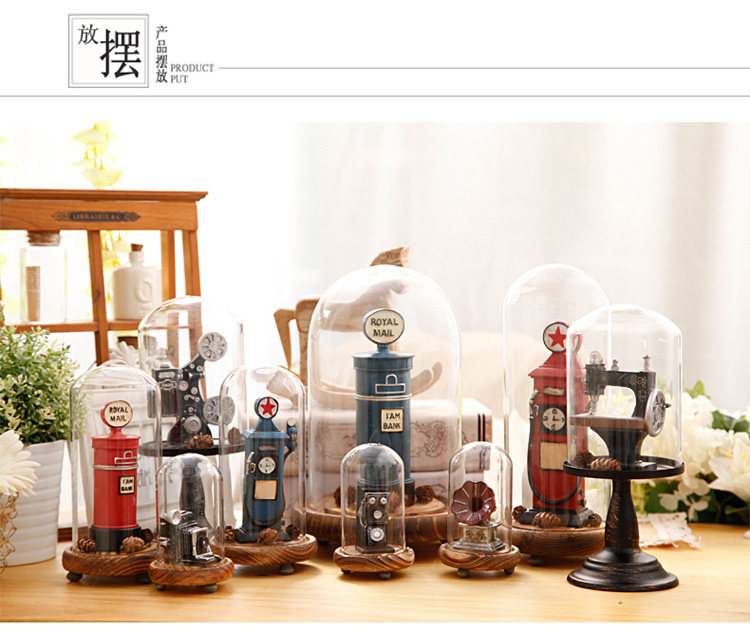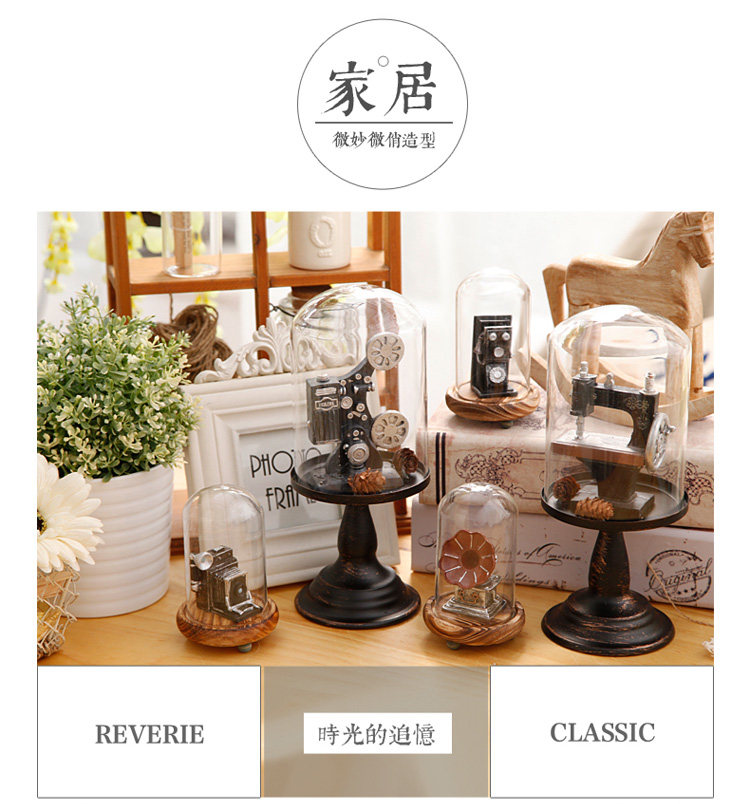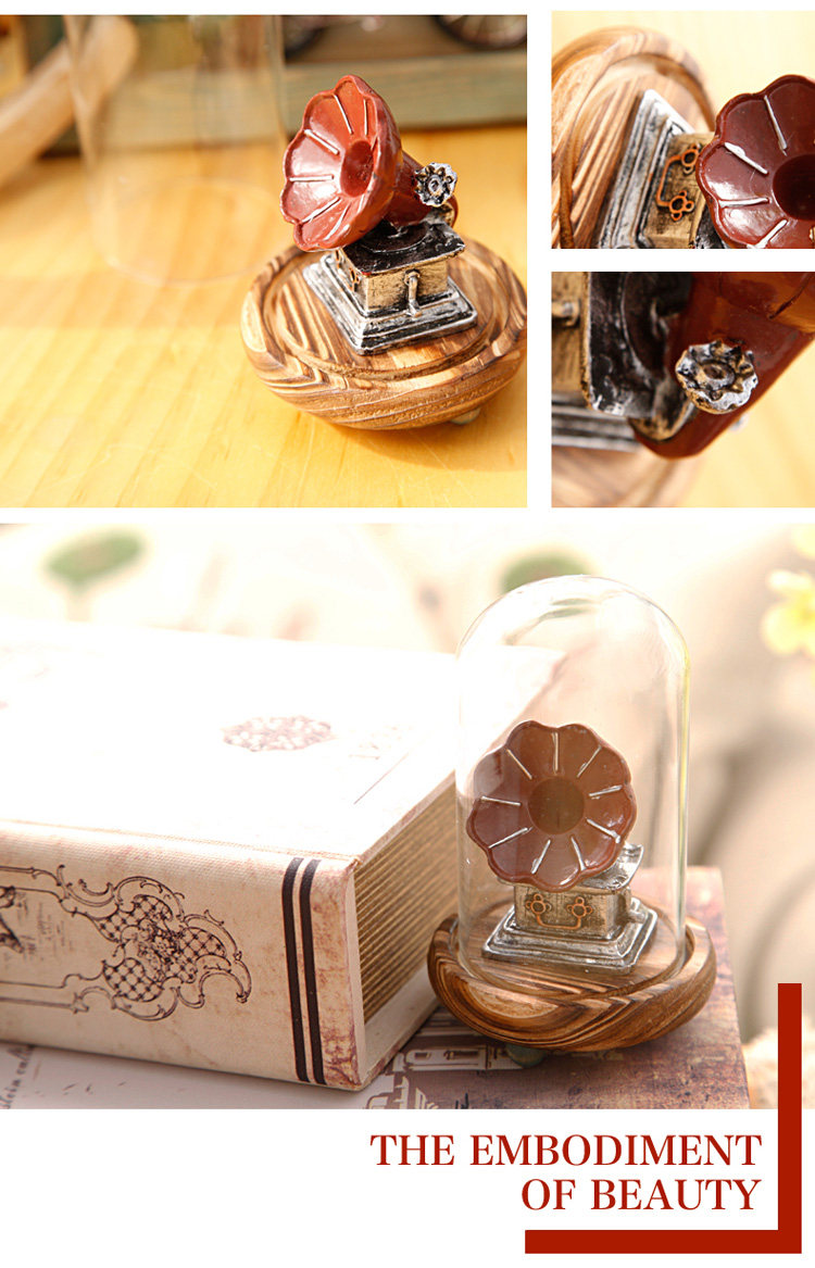 󰄬美式复古留声机模型创意玻璃罩小摆设家居客厅房间书架装饰品摆件