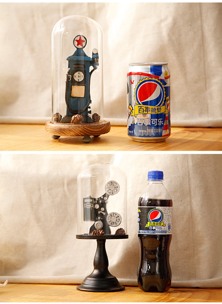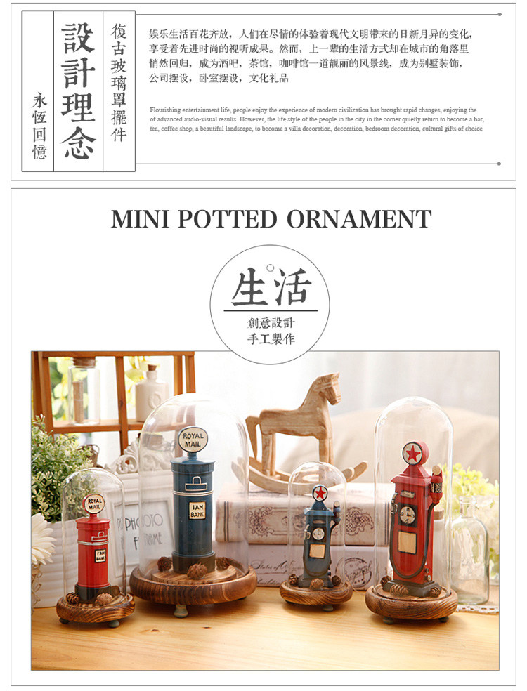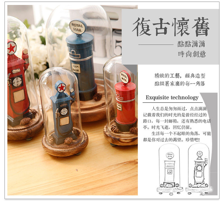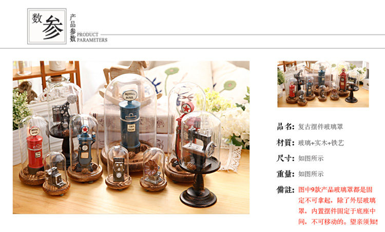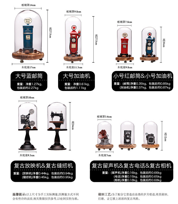 󰄬美式复古留声机模型创意玻璃罩小摆设家居客厅房间书架装饰品摆件