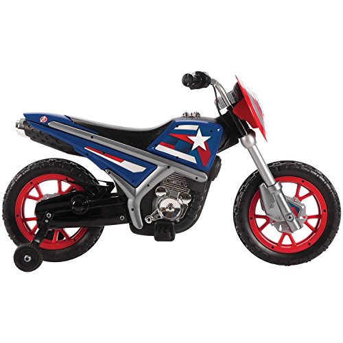 -. Title : Huffy Marvel Captain America 6V Battery Powered Kids Electric Ride on Motorcycle Toys, Blue with Training Wheels