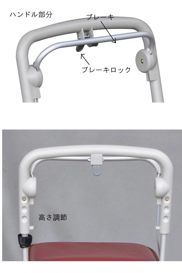 | 仕様 | 車輪:15cm 積載量:10kg 最大使用者体重:75kg ハンドル高さ3段階 足元ひろびろ ハンドブレーキ 駐車ブレーキロック 3WAYキャスター 折りたたみ式 アルミフレーム 床~カゴ上部まで53cm |