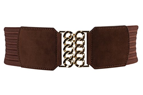 -. Title : Ladies Fashion Elasticated Leather look Belts with Gold Buckle