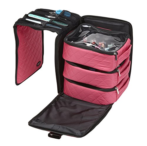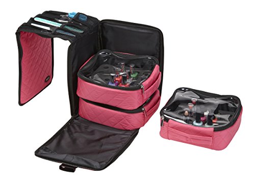 Seya 3 Piece Black Foldout Nail Polish Storage Station Set Holds 75 Bottles (Quilted Pink)