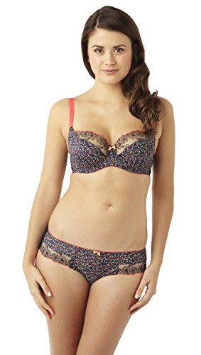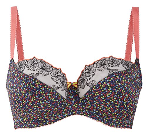 - Feature : Delicate floral embroidery with bright strawberry pink edging has been designed to create an unusual contrast to the fun multi colored star print^Bright strawberry pink strapping and loopy elastic give a vibrant quirky look to this range and compliments the bright edge of the embroidery^Laminated print fabric in the bra and a power mesh wing ensure a secure fit on all sizes^^