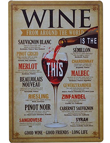 Wine From Around the World Tin Signs,12 x 8 inches