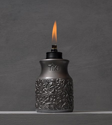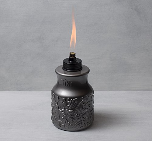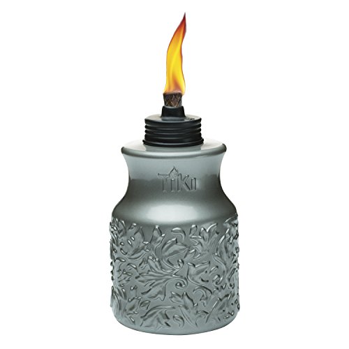 TIKI Brand 7" Baroque Barrel Table Torch Pewter, Glass