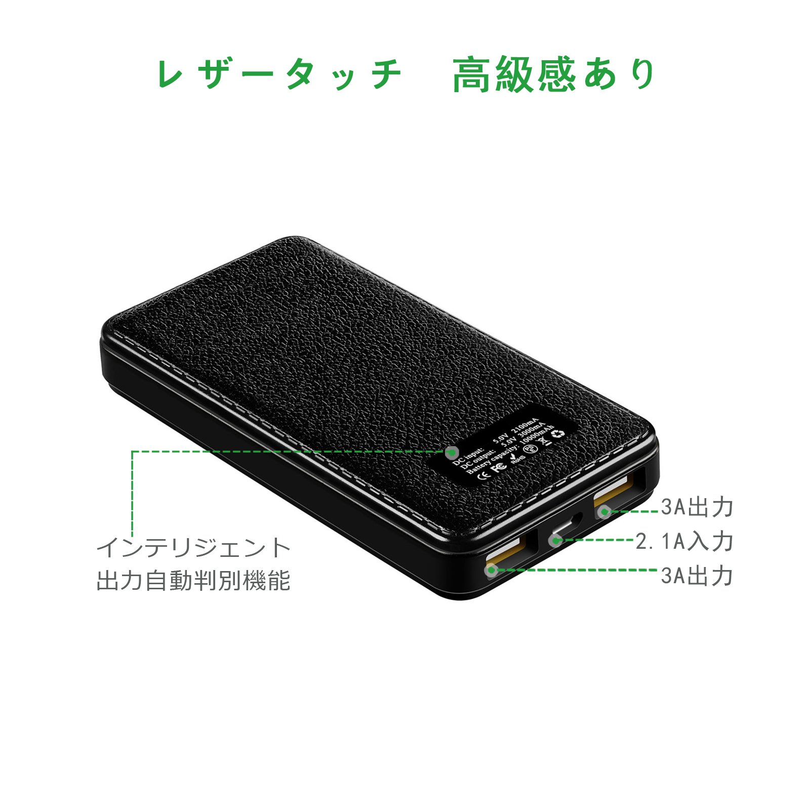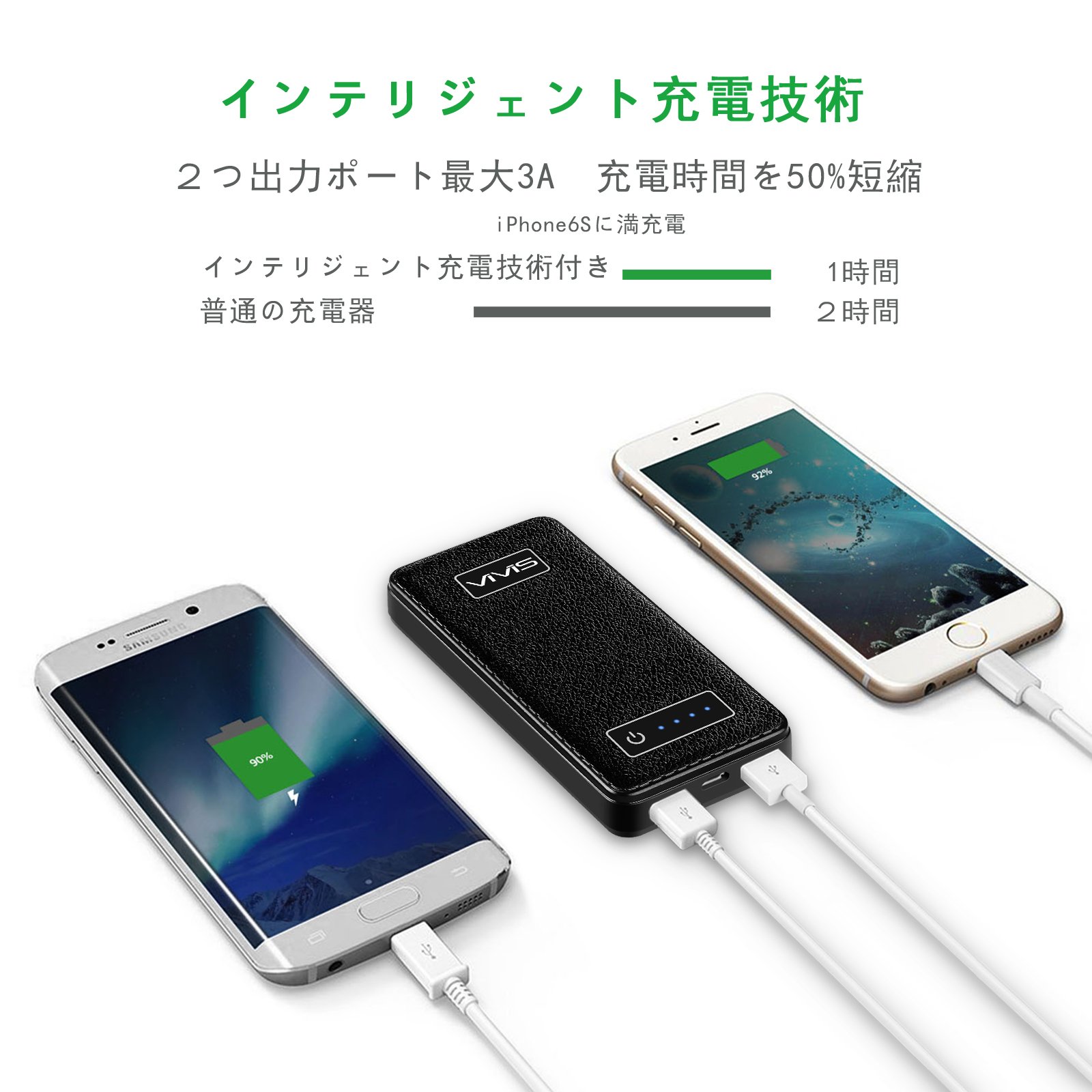 The intelligent output automatic discrimination function automatically detects the connected device, sends the optimum current, and can charge it at full speed like a genuine battery charger.