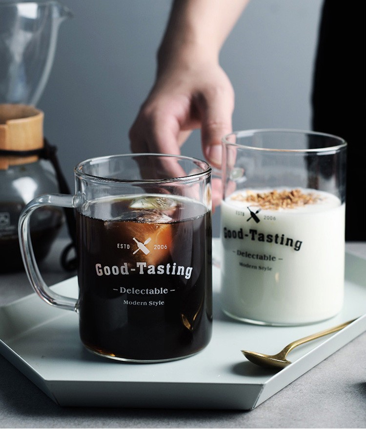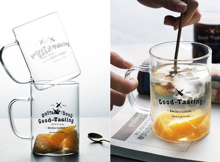 グラスカップ 純色 ワード 柄物 400ML ジュース マグカップ 無地 シンプル おしゃれ グラスカップ お茶 コーヒーカップカラー:ブラック ホワイト容量:450mlサイズ:8*11cm