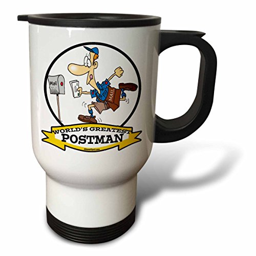 3dRose tm_103459_1 Funny Worlds Greatest Postman Occupation Job Cartoon Travel Mug, 14 oz, White