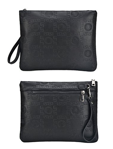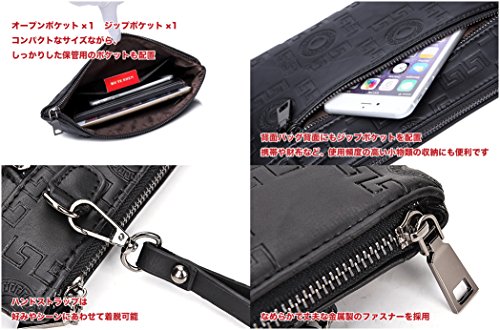 -. Feature : メイン素材: PUレザー 表地: PUレザー / シンプルながら周りに差をつける、ブラックトーン型押しデザイン。カジュアルからビジネス フォーマルまで大活躍 / 高品質PUレザーを採用。防水性に優れ、手入れも簡単。耐久力のある一品です。 / ★万能型キーホルダーが付属 【内側ポケット】オープンポケット×2、ジップポケット×1 【外側ポケット】ジップポケット×1 / コンパクトサイズでスマートに。縦:約25㎝、横:約32.3㎝、厚み:約3センチ