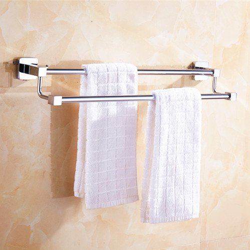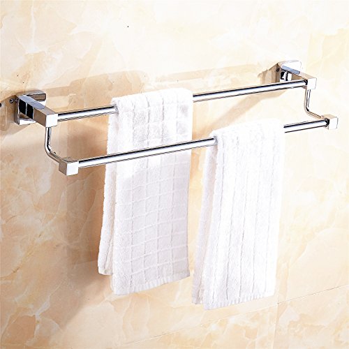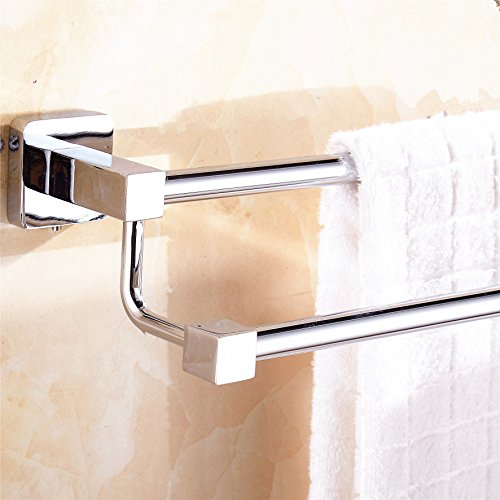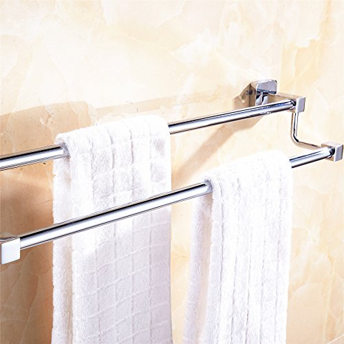 AUSWIND Modern Zinc Alloy Polished Silver Double Towel Bar Wall Mounted 23 Inch Towel Holder Bathroom Accessories YU7 (2-Layer)