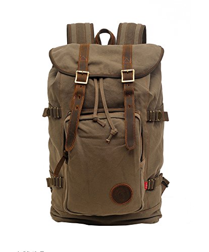 Volyer Canvas Rucksack Leather Hiking Travel Backpack School Bag