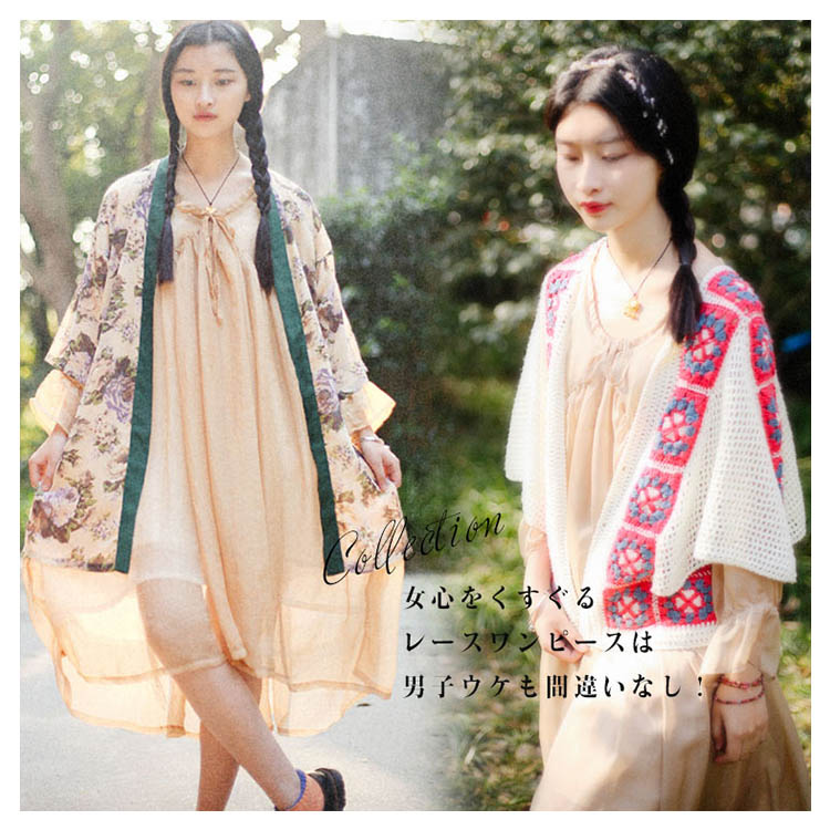 | まるで森の中のお妖精な気分にさせてくれる、魅力的な一枚。 そのまま着ても存在感バツグン、さらにカーディガンとあわせるのもOK。 細部までこだわった芸術品のような一枚。 女心をくすぐるレースワンピースは男子ウケも間違いなし! | |