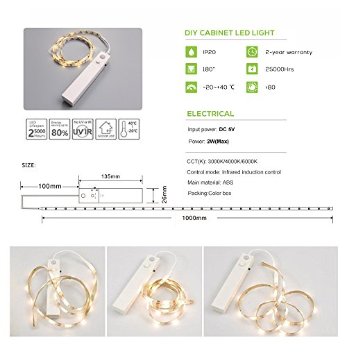 Led Strip Rope Light Battery Operated Motion Sensor 3.3ft Night Light Strip Wiresless Colset Bed Light