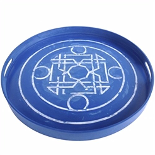 Benzara Modish Round Lacquered Serving Tray, Blue