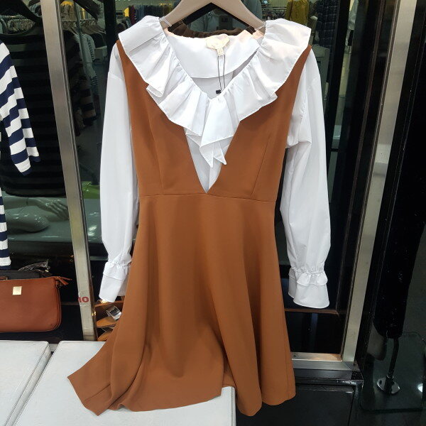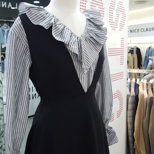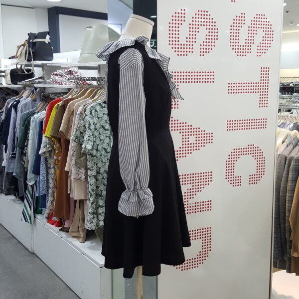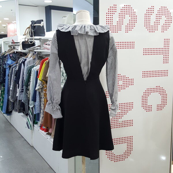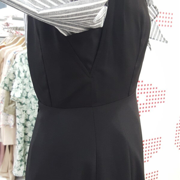 볼륨있으면서 허리선은 잘록하게 핏이 예쁜 멜빵라인 플레어 원피스입니다.뒤쪽에 한번더 잠금장치가 있어 흘러내리는 불편함없이 편안하고 예쁘게 착용하시기 좋습니다. 총장 89cn