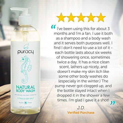 Puracy Natural Body Wash is a balanced blend of luxurious cleansers, emollients, and essential oils which cleans, softens, and refreshes all skin types.Packed in this world class blend of ingredients is Pink Himalayan Sea Salt, which naturally exfoliates, hydrates, and balances your skin.