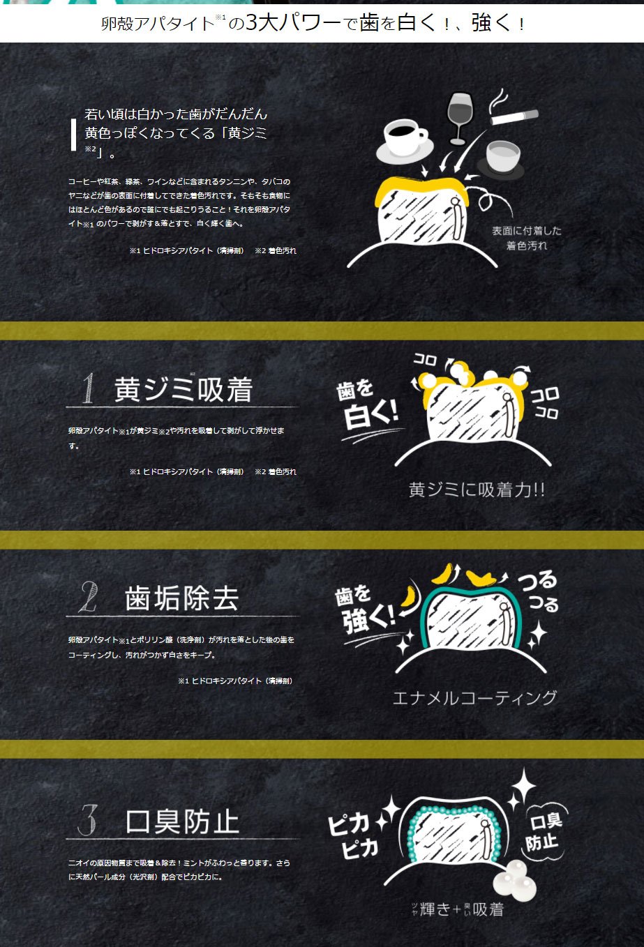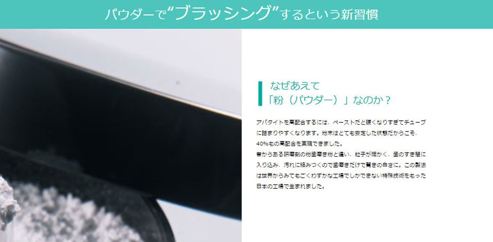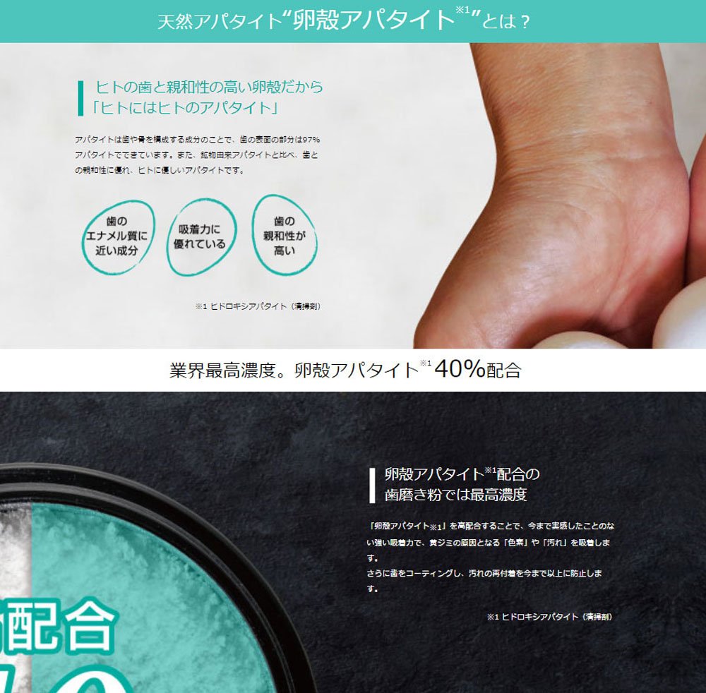 Apatite is almost the same ingredient as tooth enamel, it adsorbs teeth dirt and takes yellowing of teeth to whiten teeth.