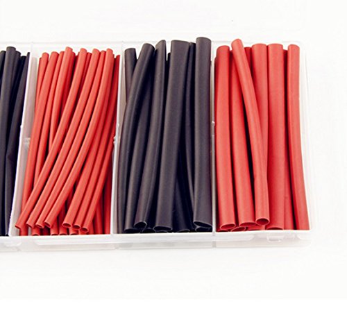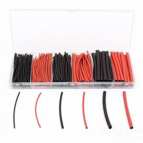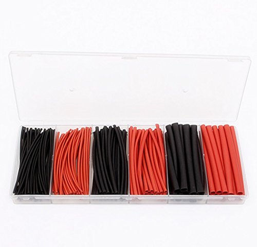 URBEST 190Pcs Polyolefin 1.5mm 3mm 6mm Assortment Ratio 2:1 Heat Shrink Tube Wrap Wire Cable( Black and Red)