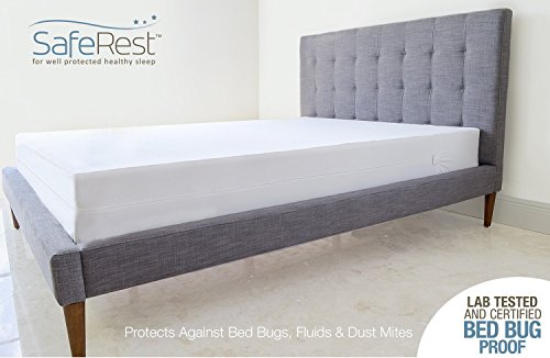 -. Brand : SafeRest -. Feature : Independently lab tested and certified bed bug entry, escape and bite proof / Surrounds the box sP.R.Ing on all 6 sides with a durable high-grade polyester surface material back coated with a water, bed bug and allergen proof membrane layer (great for those with asthma and allergies) / Exclusive Micro-Zipper technology prevents all stages of bed bugs from passing through the zippers teeth / 360 Secure zipper feature prevents accidental openings by sealing the end zipper traveler with a Velcro flap / 10-year full replacement warranty and machine washable (registered with the FDA as a class 1 medical device) -. Label : SafeRest -. Manufacturer : SafeRest -. ProductGroup : Home -. ProductTypeName : HOME_BED_AND_BATH -. Publisher : SafeRest -. Studio : SafeRest -. Title : SafeRest Premium Box SP.R.Ing Encasement - Lab Tested Bed Bug Proof, Dust Mite Proof and Waterproof - Breathable, Noiseless and Vinyl Free (Fits 6 - 9 in. H) -. Warranty : 10 Year
