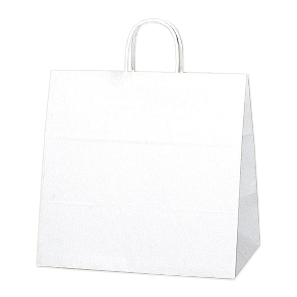 1枚サイズ:巾34×マチ22×高32cm 内容量:50枚入 色・柄:白無地 商品特徴:上部の切り返しなし・マチ広タイプ 手紐:丸紐(紙製)