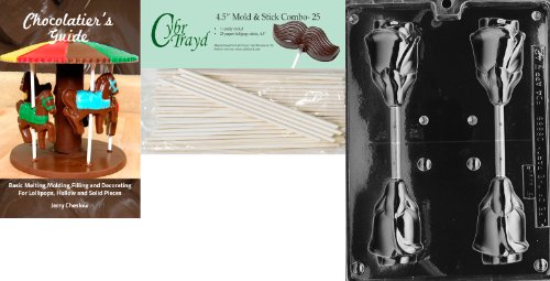Cybrtrayd 'Large 3D Rose Lolly' Fruits and Vegetables Chocolate Candy Mold with 25 4.5-Inch Lollipop Sticks and Chocolatier's Guide
