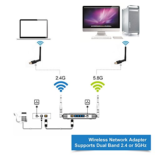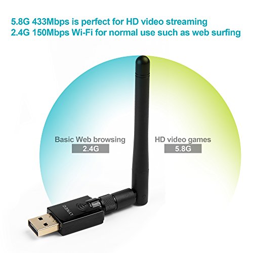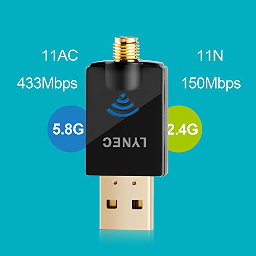 -. Binding : Electronics -. Brand : LYNEC -. Color : Black -. EAN : 0710185707921 -. Feature : Upgrades PCs to 802.11ac, the latest & most powerful Wi-Fi technology - 3 times faster than wireless N speeds. Ideal for gaming online and seamless HD video streaming / Up to 600Mbps Wi-Fi speeds on 5GHz (433Mbps) and 2.4GHz (150Mbps) bands. Dual band reduces interference for better connections to more Wi-Fi devices / 802.11ac Wi-Fi technology and detachable 2dBi omni-directional dual band antenna for increased coverage and stability / Beamforming+ technology boosts speed, range and reliability. / Innovative mini-design is very ideal for travel and desktop placement. Compatibility: Windows 8.1 Windows 7, Windows Vista, Windows XP -. Label : LYNEC -. Manufacturer : LYNEC -. Model : UC6 -. MPN : UC6 -. OperatingSystem : Windows XP -. PackageQuantity : 1 -. PartNumber : UC6 -. ProductGroup : PC Accessory -. ProductTypeName : NETWORKING_DEVICE -. Publisher : LYNEC -. Studio : LYNEC -. Title : LYNEC UC6 600Mbps 802.11ac Dual Band 2.4G/5G Wireless Network Adapter USB Wi-Fi Adapter with 2dBi Antenna Support Windows XP,Windows Vista,Win 7,Win 8.1 -. UPC : 710185707921