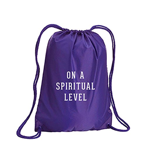 Product Description This durable and stylish nylon tote features "On A Spiritual Level" on a cinch pack tote with white ink. Bag comes in small and large sizes and is made of a durable 210 Denier nylon and has color-matched draw cords. Printed in the USA on an imported bag. 0