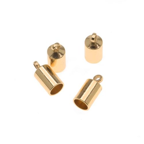 Beadaholique 4-Piece Barrel Cord Ends with Ring for 4mm Cord, 10mm, Gold