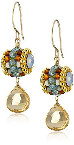 Miguel Ases Champagne Quartz and Blue Double-Sided Swarovski Drop Earrings