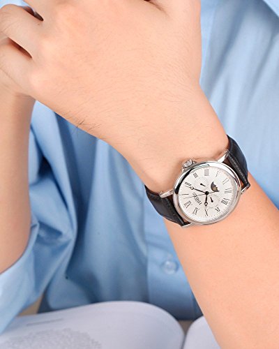 -. Feature : ★ Functions: Sun&Moon Phase, Week and Calendar Displayed / ★ Movement Model: Seiko Time Module VX3H, Imported Japanese Movt / ★ 3 Different Colors Optional ---White, Black and Rose Golden, Please Input ♥W80035G / ★ 50M Water Resistance, Replacing within 30 Days, 1 Year Warranty / ★ Stainless Steel Watch Case, Roman Hour Numerals, Classic Retro Design